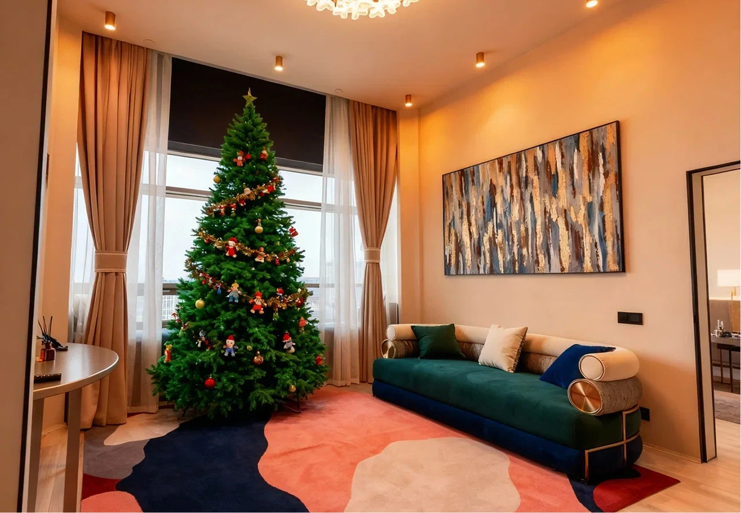 4) Обожаемый диван у окна: ужинали с видом на огни ночного города — настоящий релакс 🍽️🌃