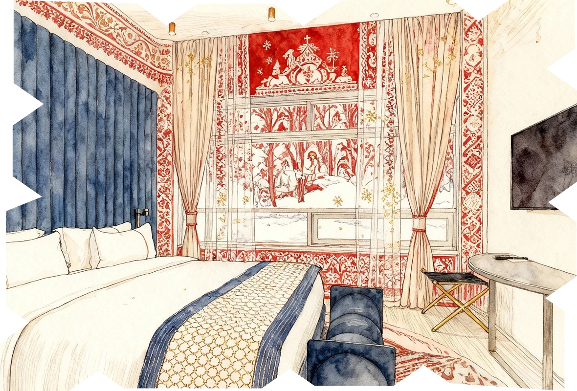 Здесь каждый номер словно покои для сказочного героя: простор, умиротворение и виды на Москву-град, которые открываются прямо из окна