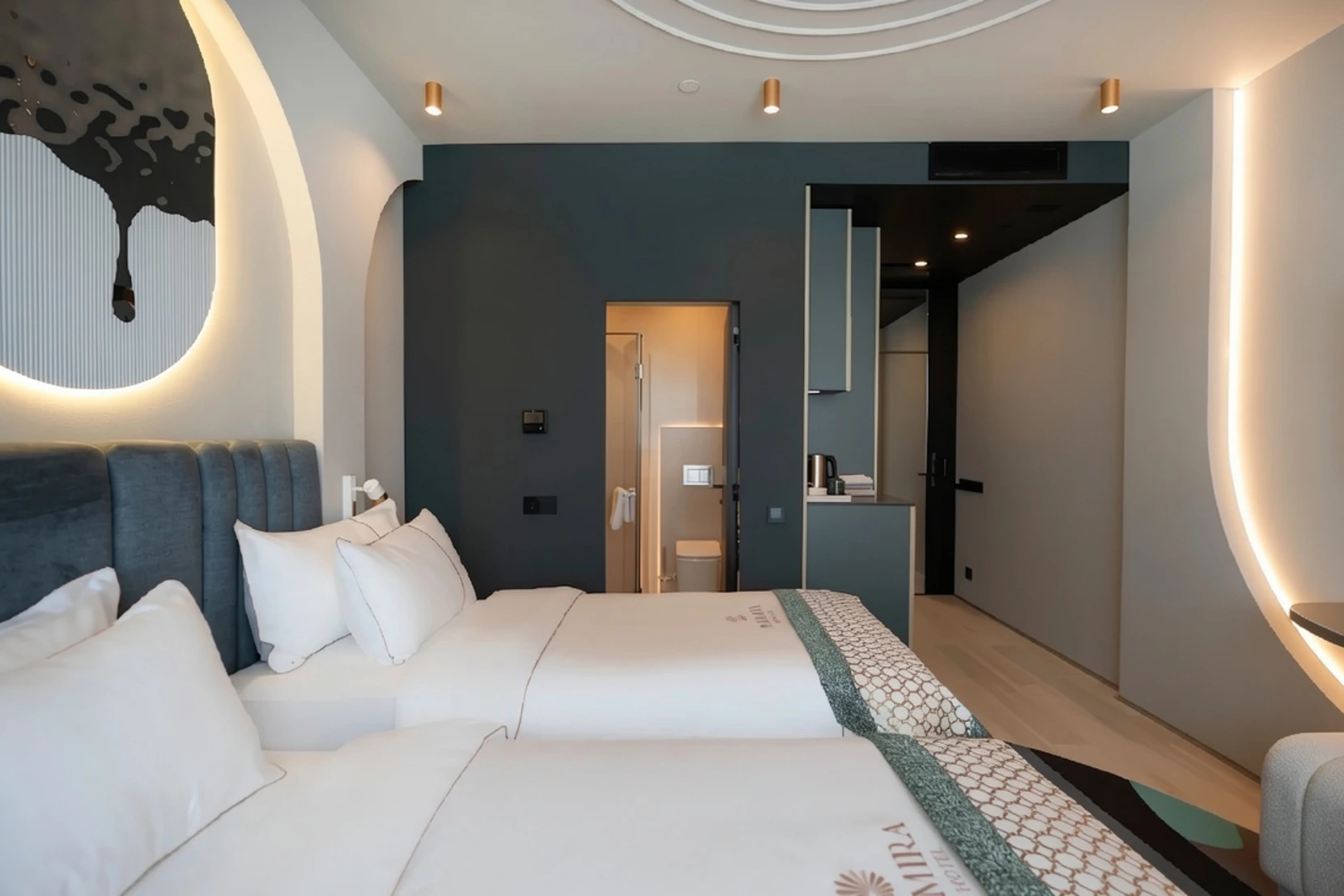 Двухкомнатный номер с потрясающей панорамой на город. В номере есть спальня и гостиная с кухонной зоной (без плиты), а также два санузла. Для удобства гостей предусмотрены капсульная кофемашина, кондиционер, малый холодильник и другие важные составляющие идеального отдыха.